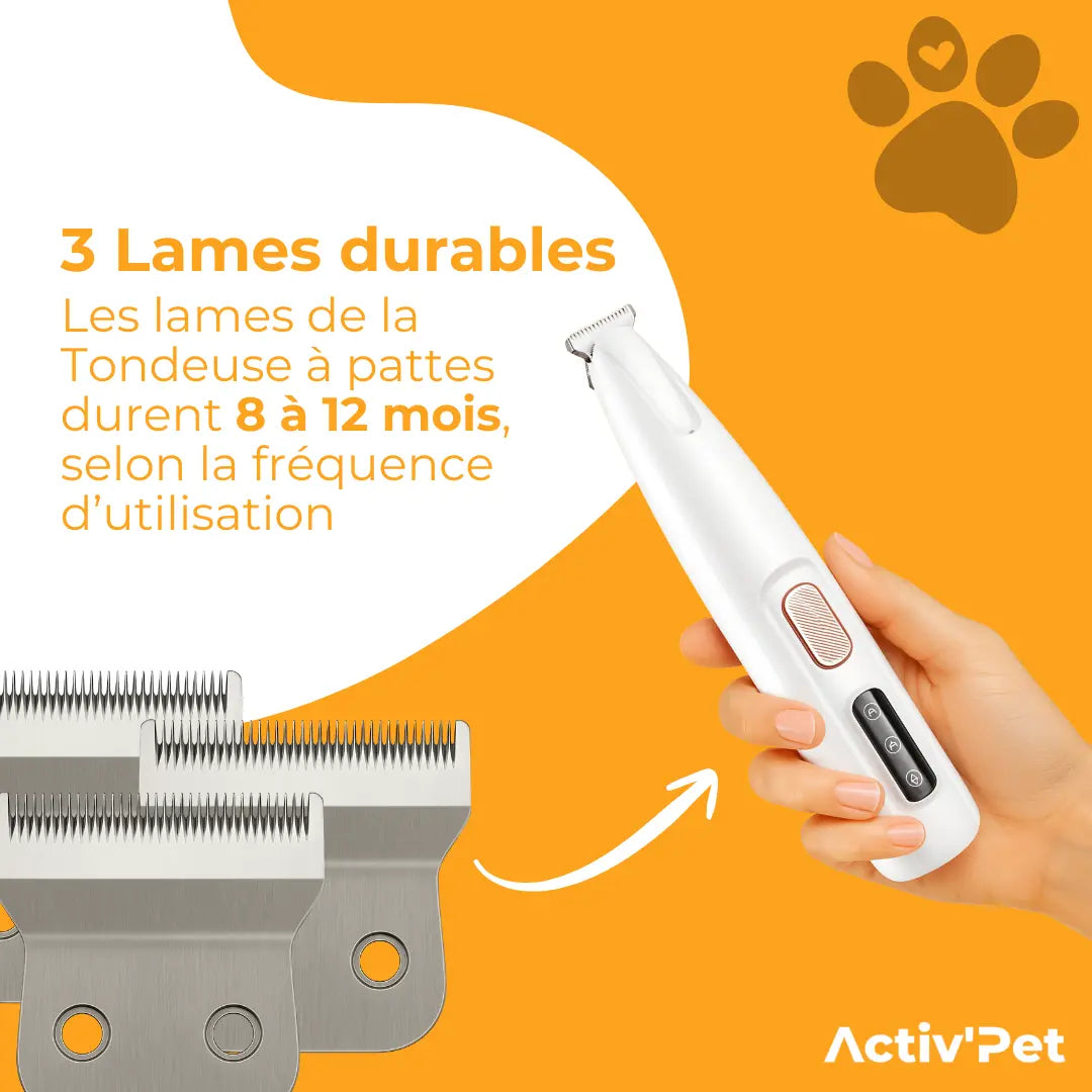 Les lames d’une tondeuse à pattes durent généralement entre 8 et 12 mois, selon la fréquence et l’intensité d’utilisation. Si vous constatez que la tondeuse ne coupe plus aussi précisément et proprement qu’au début, il est temps de remplacer les lames. Leur durée de vie peut varier selon le type de pelage et l’usage, mais un simple changement de lame permettra à votre tondeuse de rester efficace.